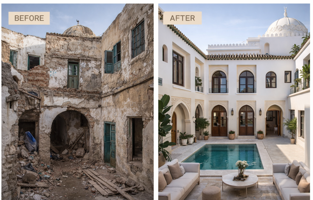 Special Star Build transforms older properties into elegant modern spaces while preserving authentic Moroccan architectural character. From structural renovation to complete property restoration, we deliver high quality results designed for long term value.
